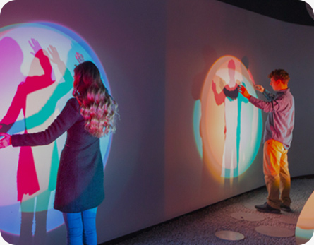 華竣將國際先進的多媒體創(chuàng)意互動科技與硬件設備應用于展館中如AR/VR/MR、機械藝術裝置、結構投影等等,